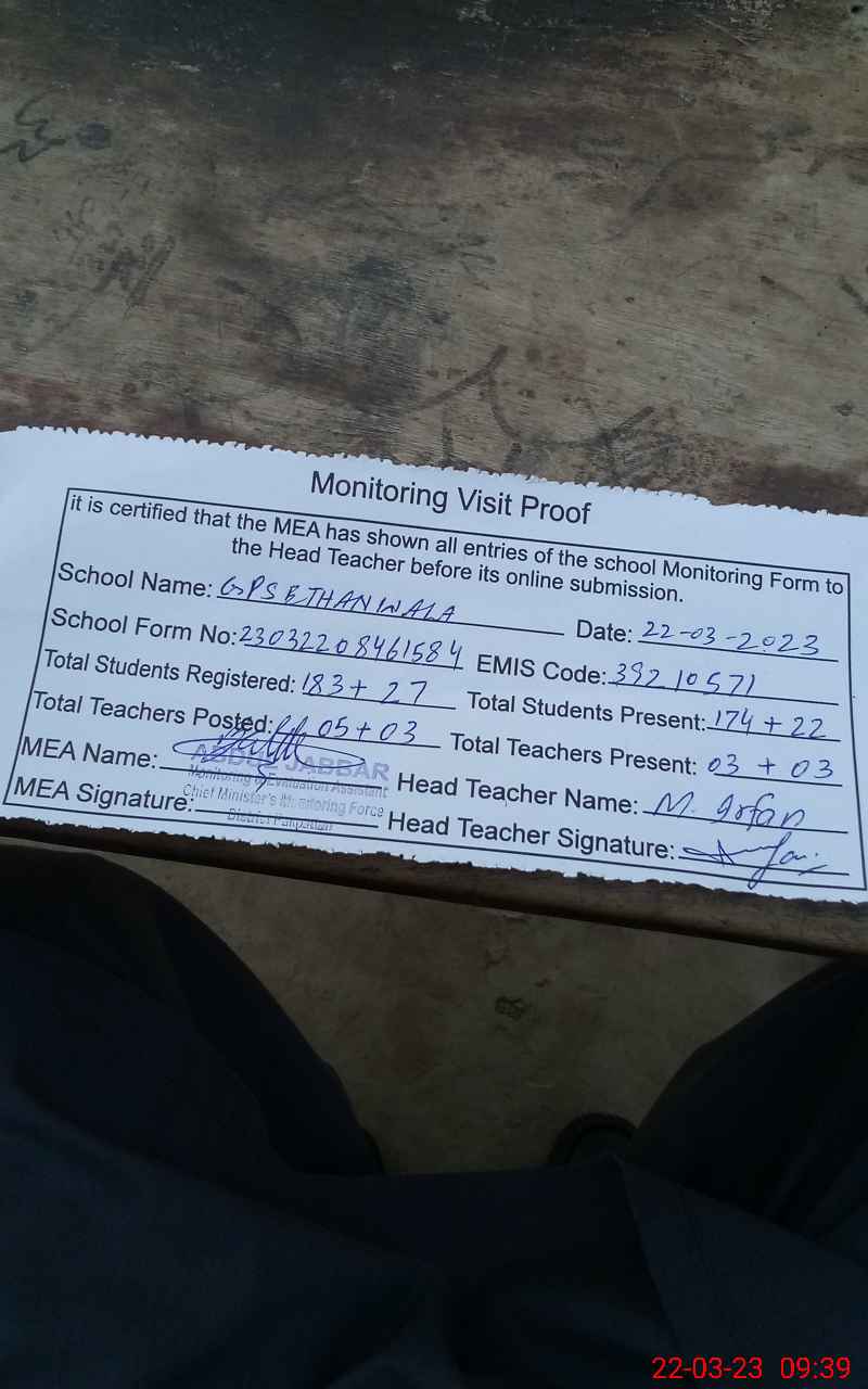 | EMIS Code: 39210571 | Name of School: GPS SETHAN WALA | |||