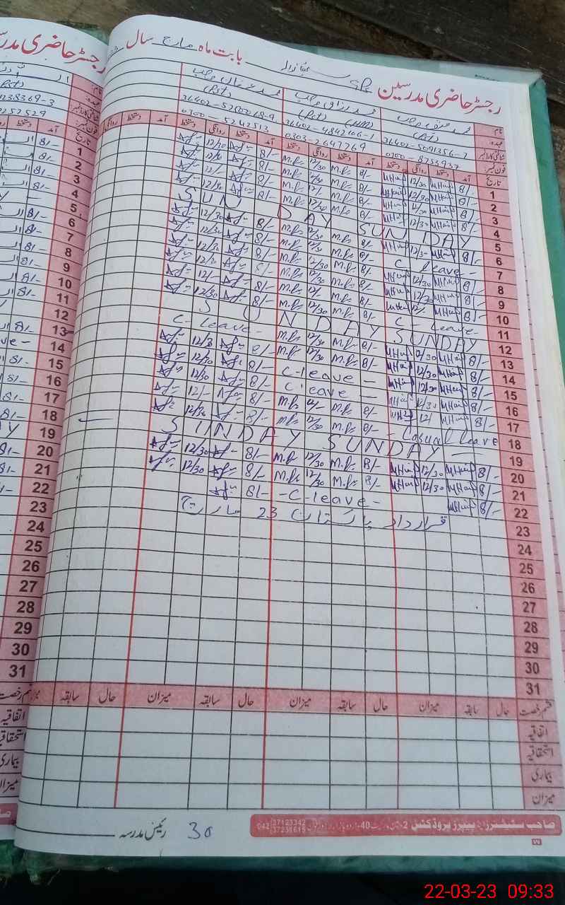 | Name: Mu**** Ra**** Designation: (School Headmaster's/Headmistress's) PST Phone/Cell Number: 03**** |