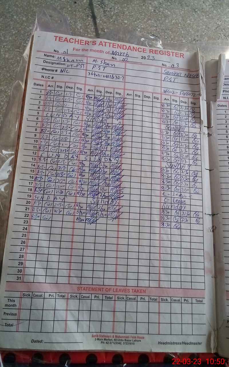 | Name: MU**** IN**** Designation: (School Headmaster's/Headmistress's) PST Phone/Cell Number: 03**** |