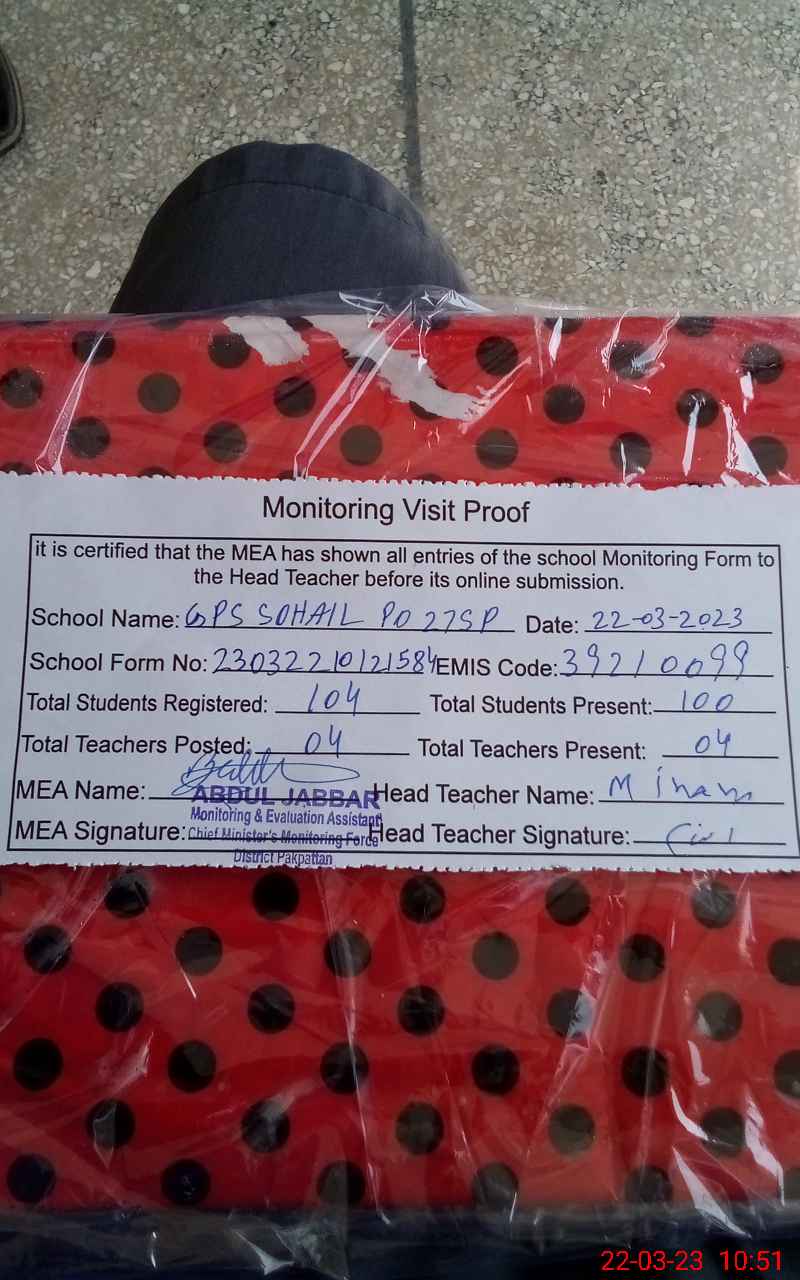 | EMIS Code: 39210099 | Name of School: GPS SOHAIL P/O 27/SP | |||