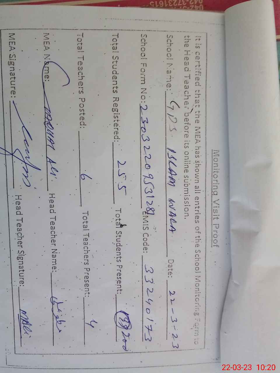 | EMIS Code: 33240173 | Name of School: GPS ISLAM WALA | |||