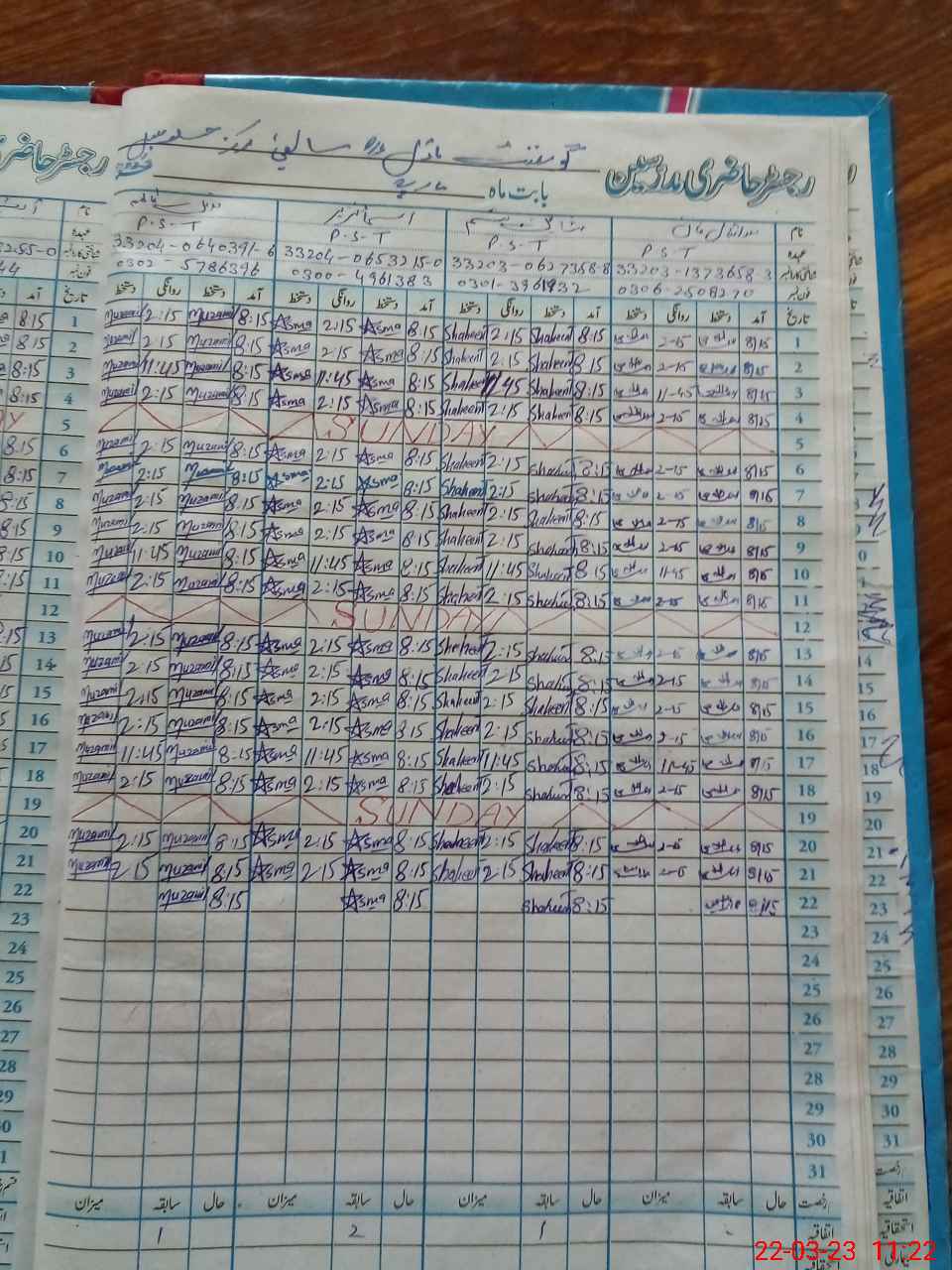 | CNIC | Full Name | Designation | R/C | Absence During Last Calender Month |