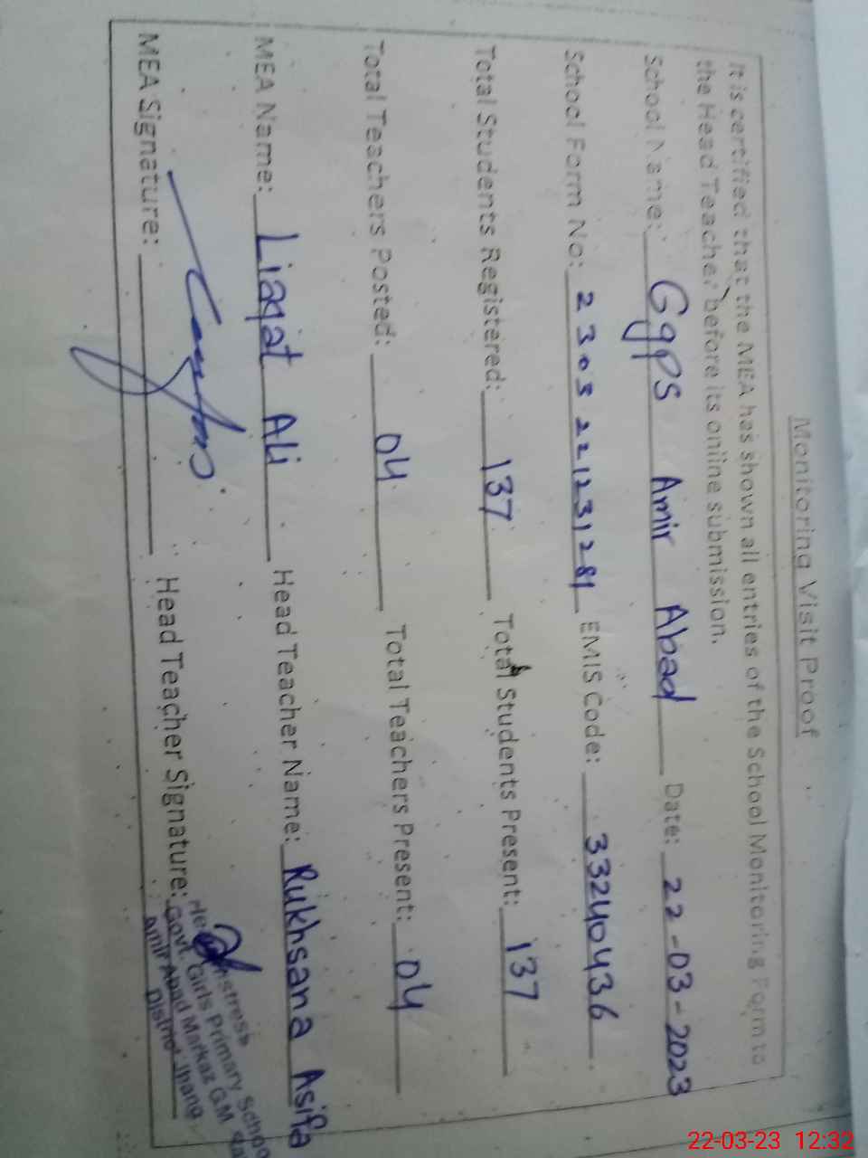 | EMIS Code: 33240436 | Name of School: GGPS AMIR ABAD | |||