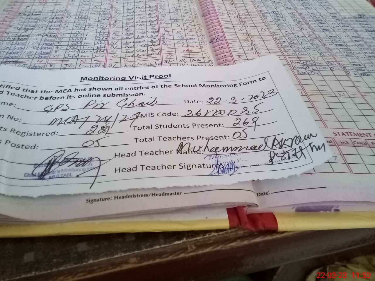 | EMIS Code: 36120085 | Name of School: GPS PIR GHAIB P/O PIR GHAIB MOUZA HILAL WAJEH | |||