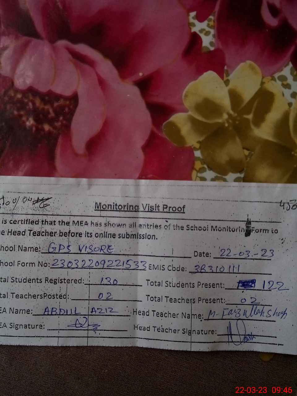 | EMIS Code: 38310111 | Name of School: GPS VISORE | |||