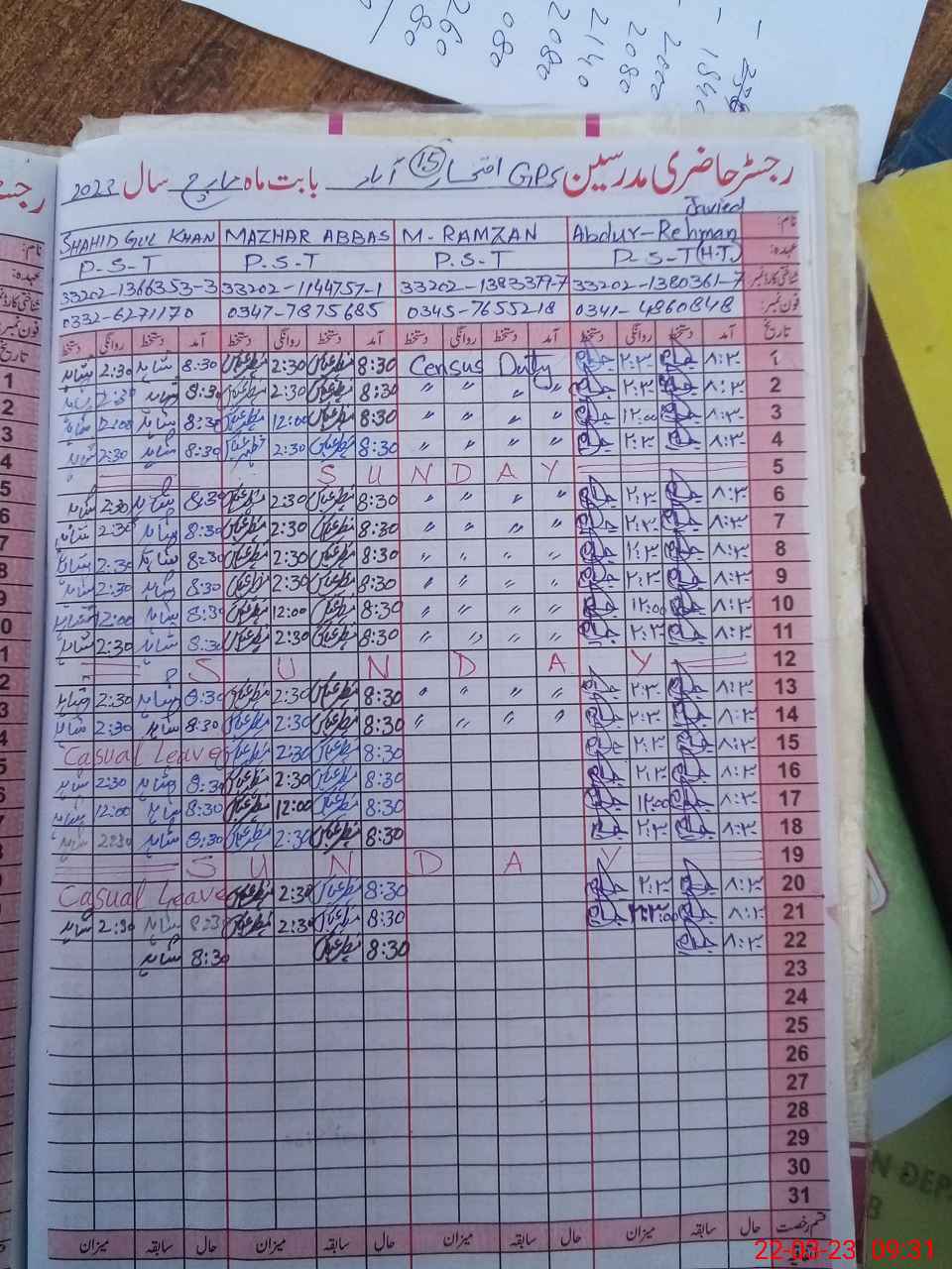 | Name: AB**** RA**** JA**** Designation: (School Headmaster's/Headmistress's) PST Phone/Cell Number: 03**** |