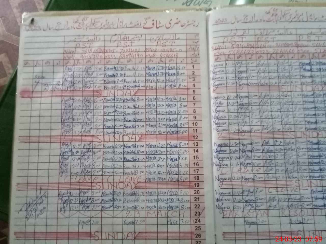 | Name: AM**** MA**** Designation: (School Headmaster's/Headmistress's) PST Phone/Cell Number: 03**** |