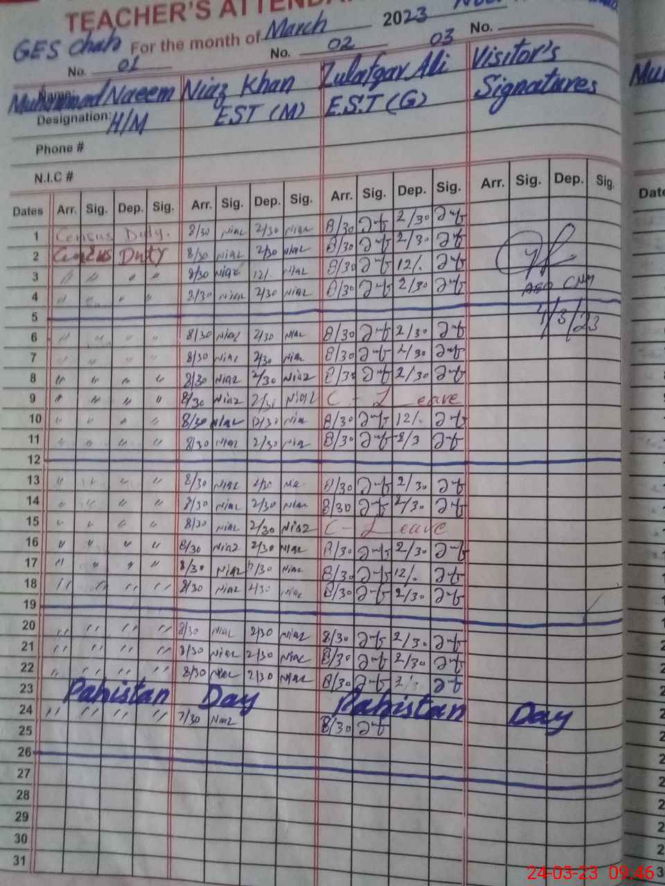 | Name: Mu**** Na**** Designation: (School Headmaster's/Headmistress's) EST Phone/Cell Number: 03**** |