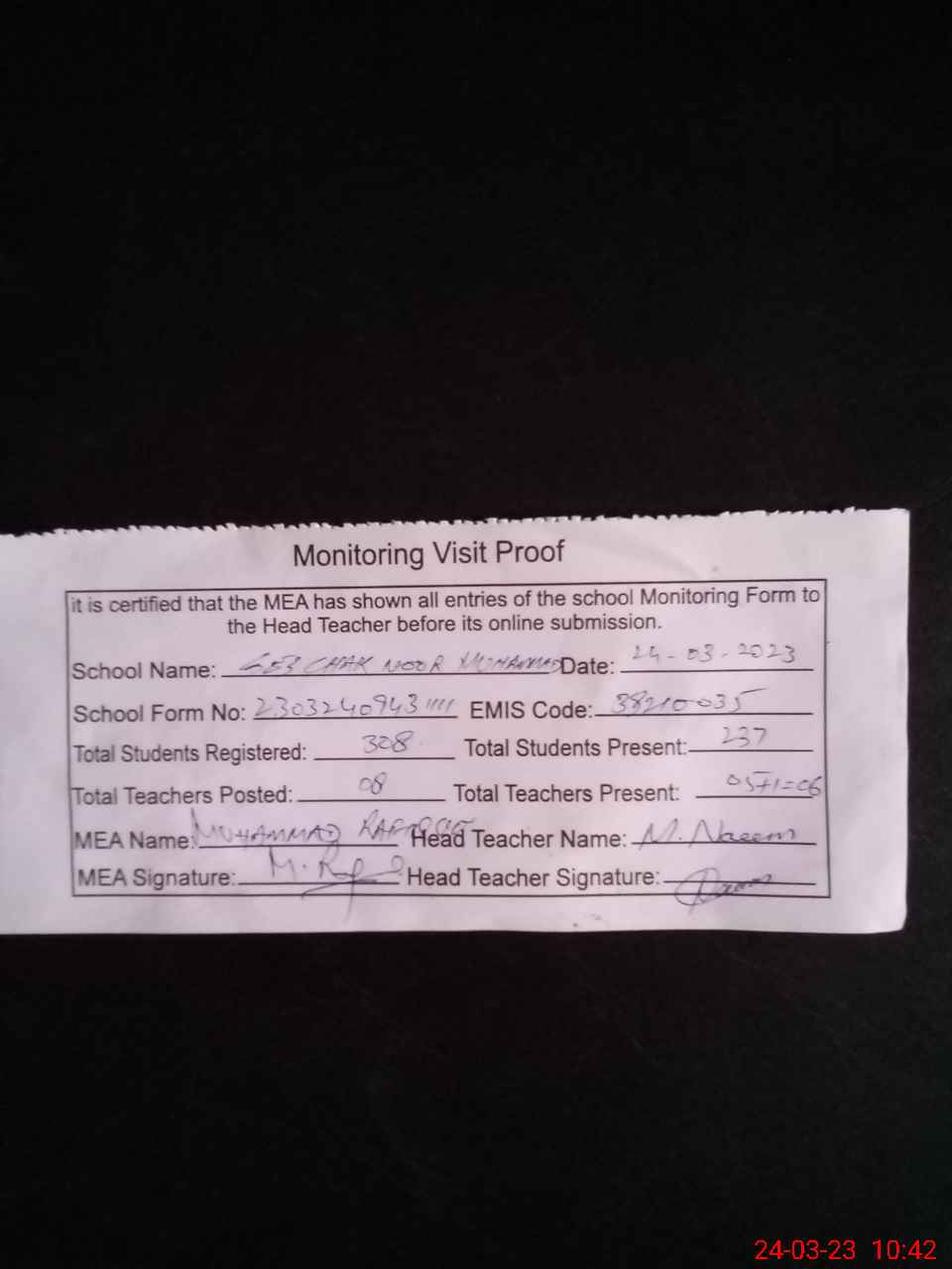 | EMIS Code: 39210035 | Name of School: GES CHAK NOOR MUHAMMAD | |||