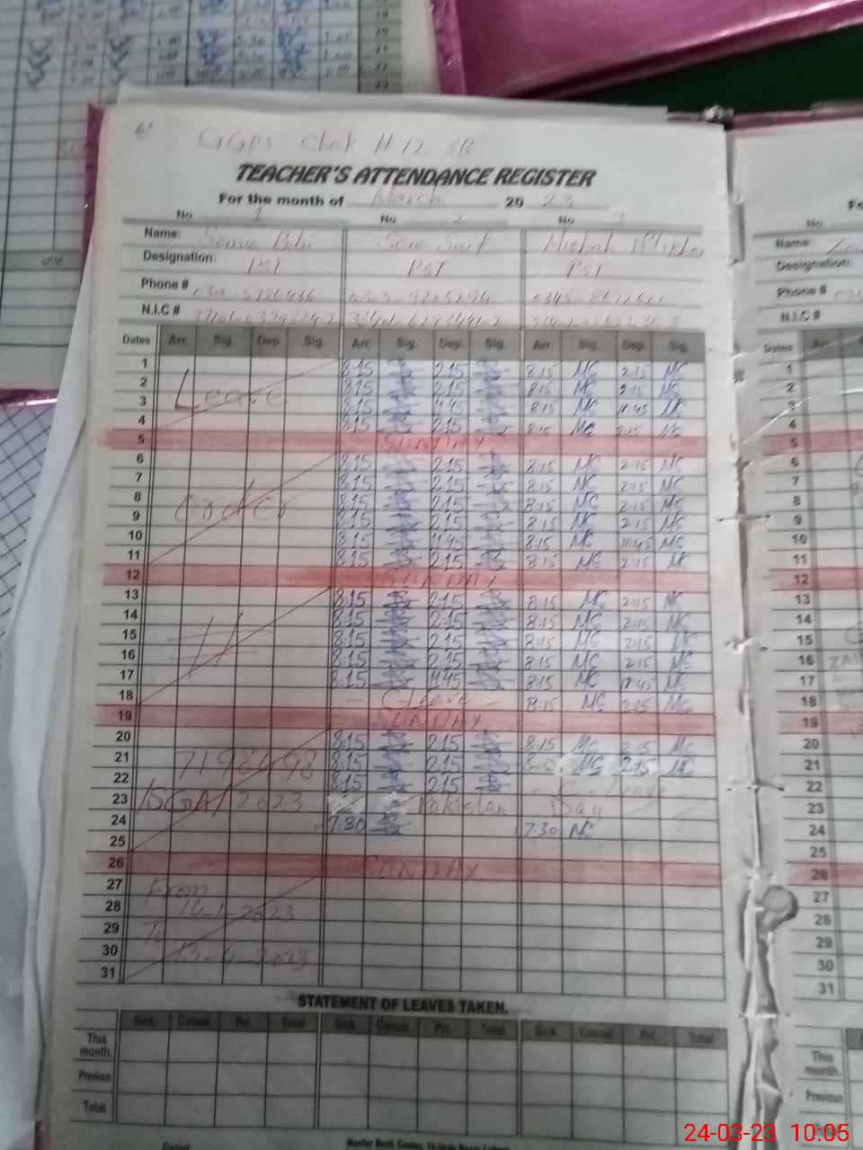 | CNIC | Full Name | Designation | R/C | Absence During Last Calender Month |