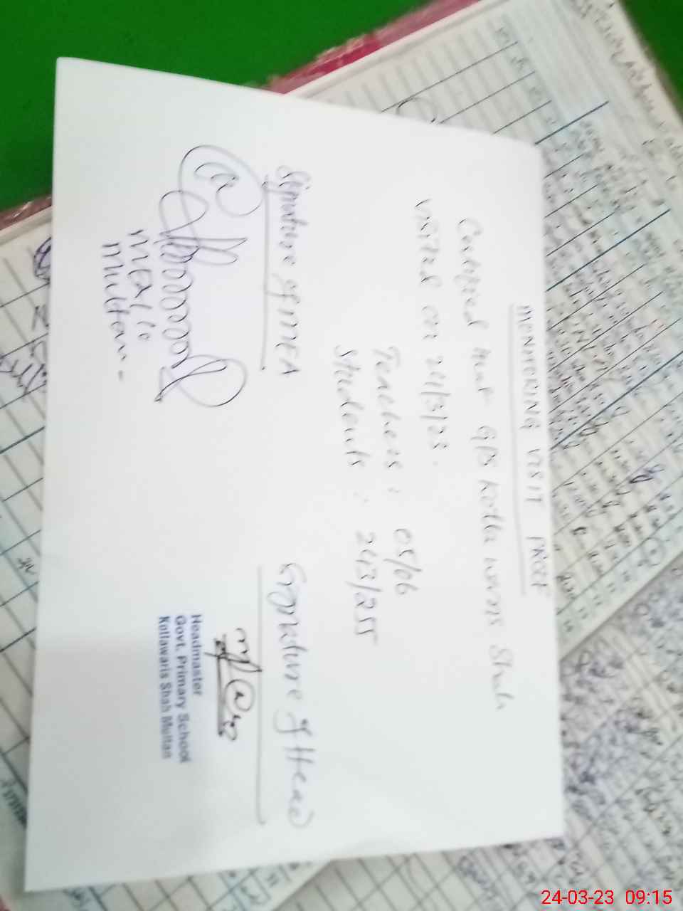 | Attendance Register | Head Teacher | MEA with School | Visit Proof |