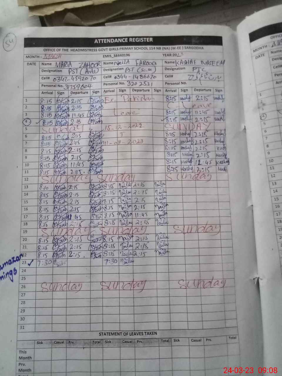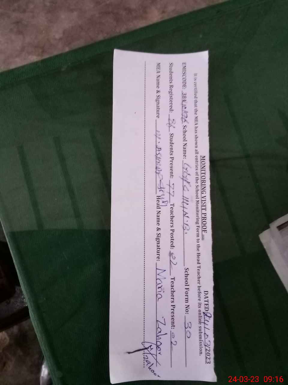 | Name: Ma**** Za**** Designation: (School Headmaster's/Headmistress's) Pst Phone/Cell Number: 03**** |