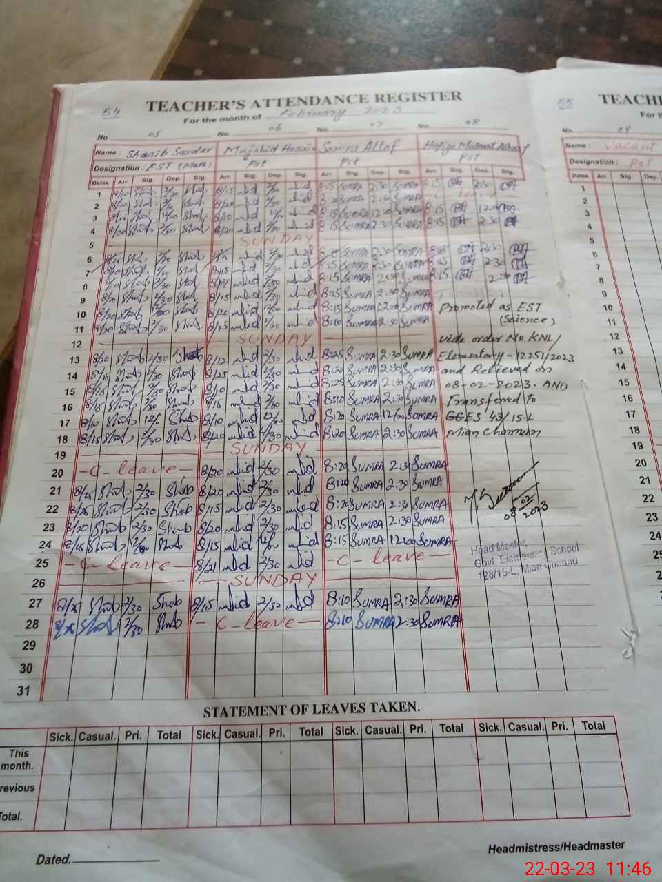 | Name: Mu**** Su**** Designation: (School Headmaster's/Headmistress's) SST Phone/Cell Number: 03**** |