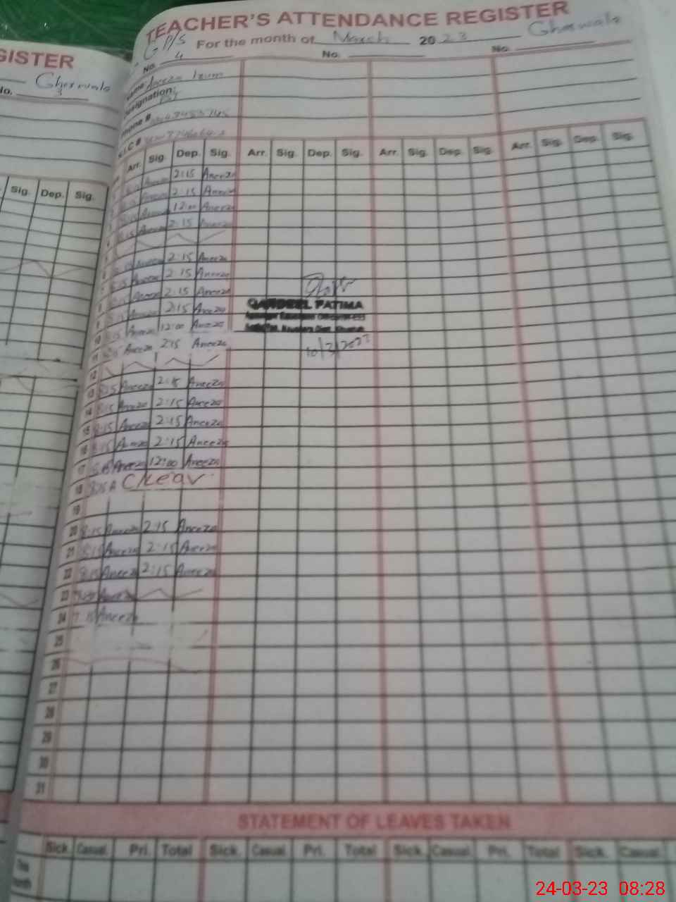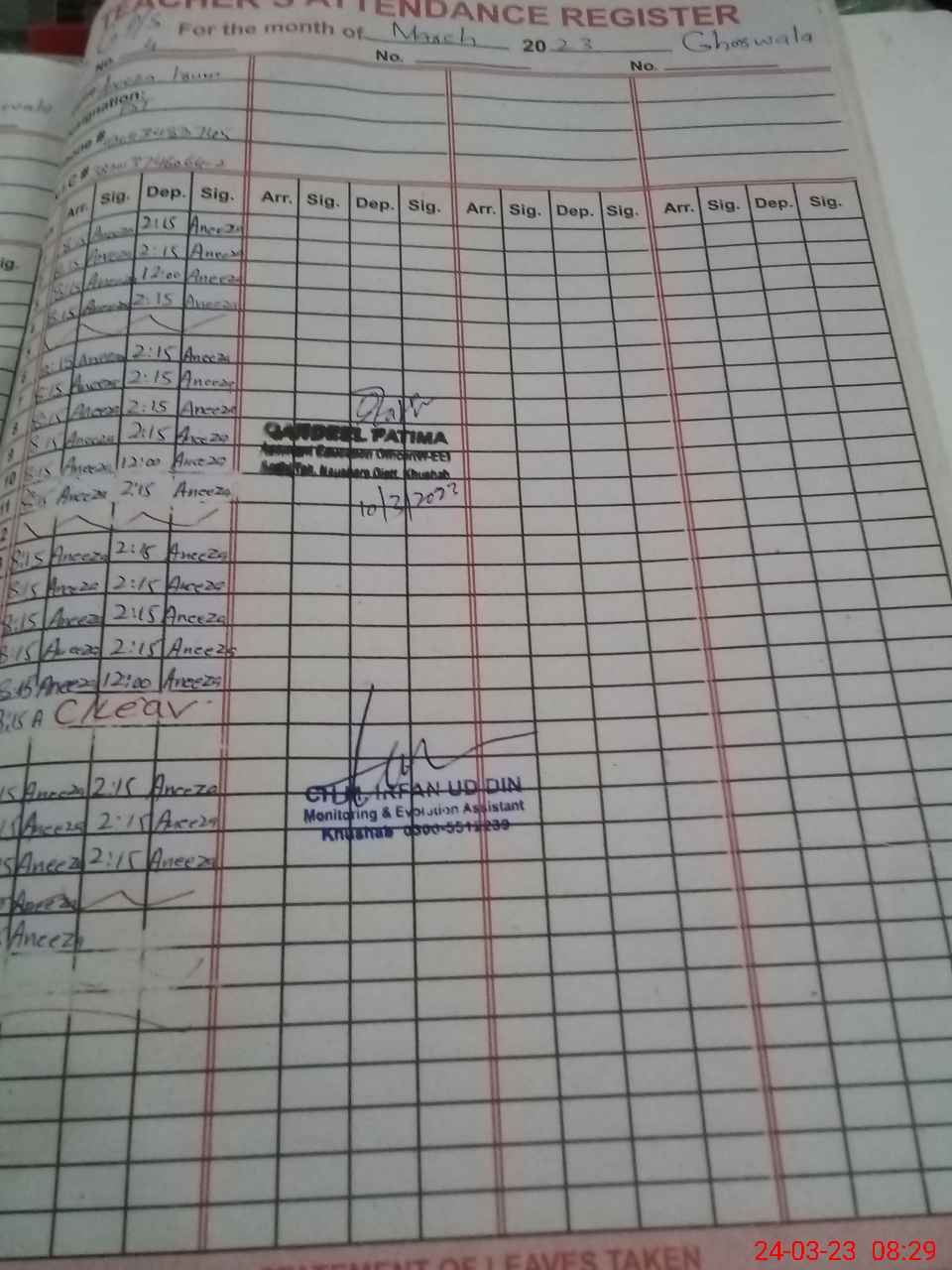 | Name: FA**** BI**** Designation: (School Headmaster's/Headmistress's) PST Phone/Cell Number: 03**** |