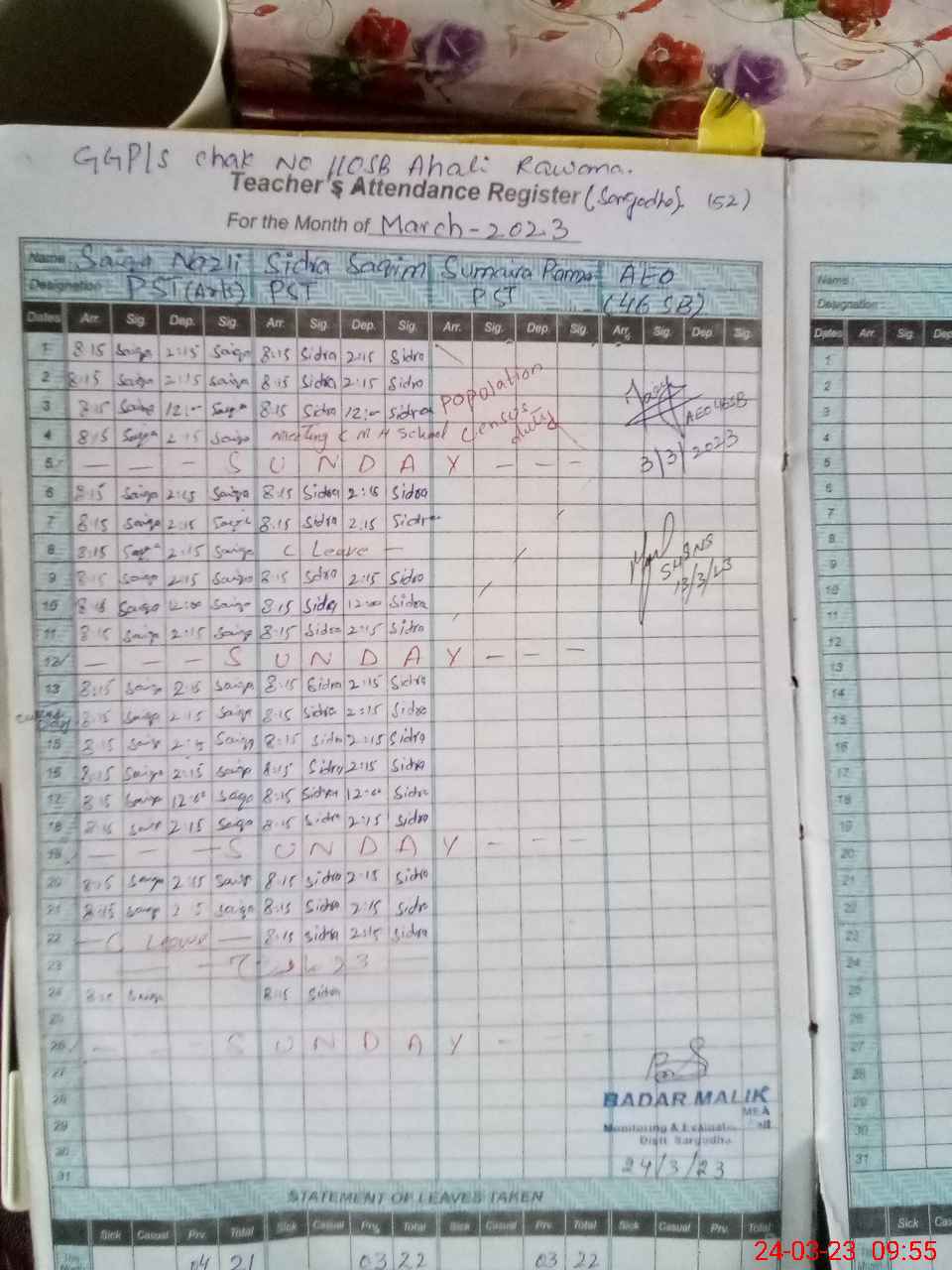 | Name: Si**** Sa**** Designation: (School Headmaster's/Headmistress's) PST Phone/Cell Number: 03**** |
