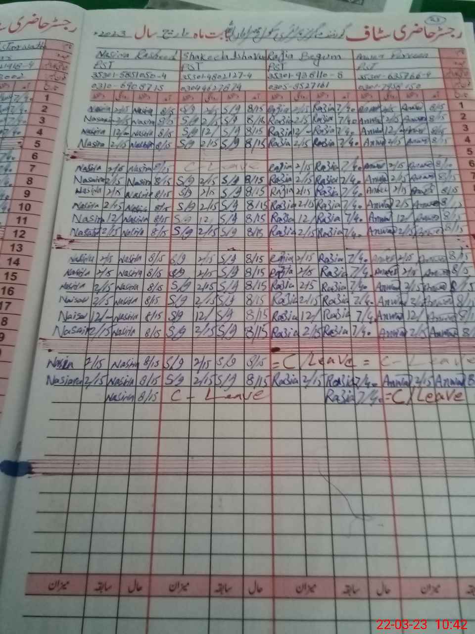 | CNIC | Full Name | Designation | R/C | Absence During Last Calender Month |