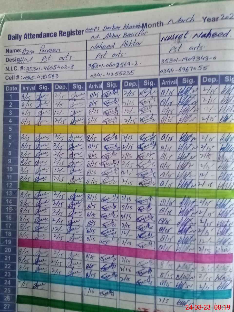 | Name: AZ**** PE**** Designation: (School Headmaster's/Headmistress's) PST Phone/Cell Number: 03**** |