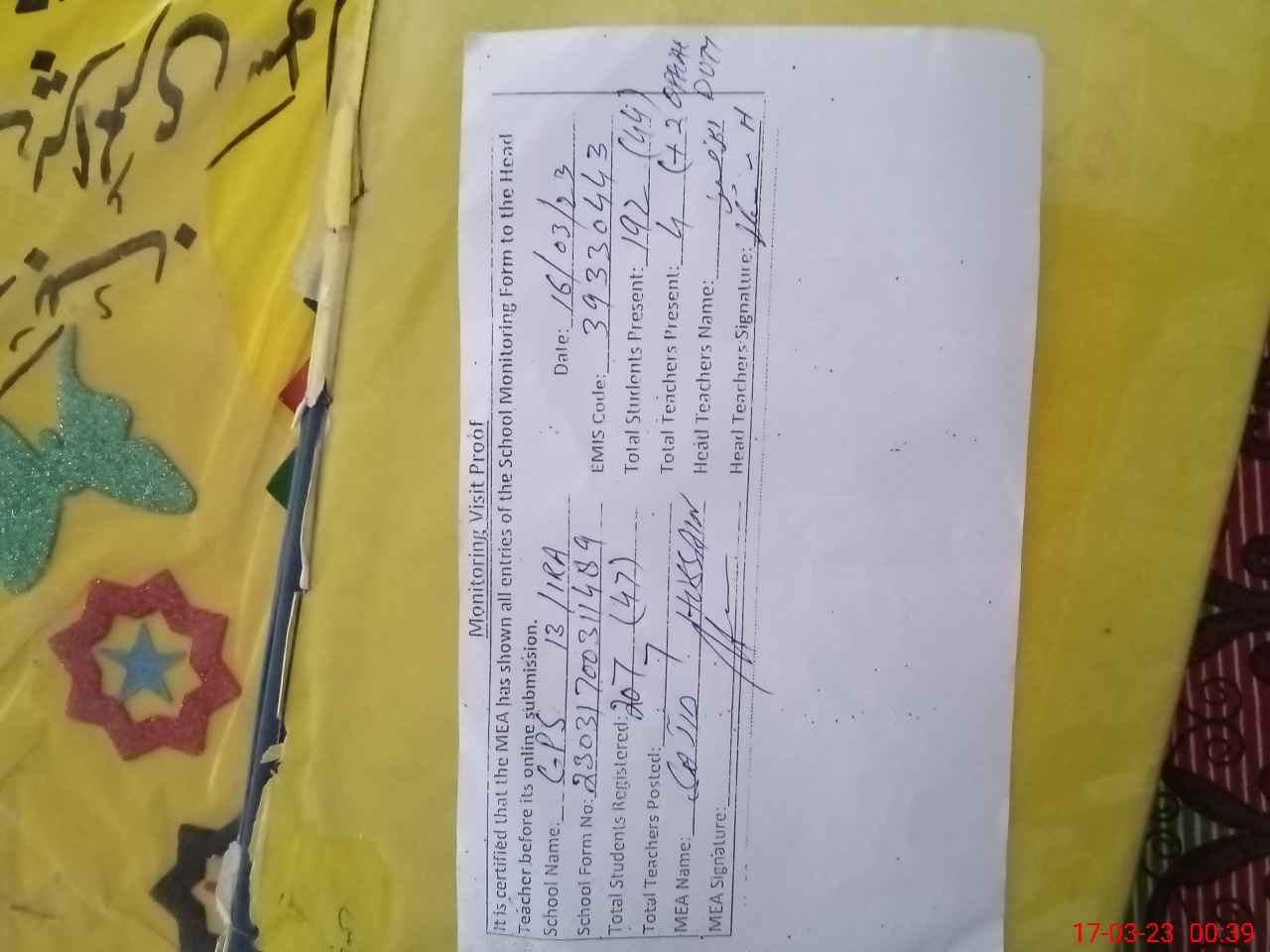 | EMIS Code: 39330443 | Name of School: GPS CHAK NO.13/1-RA | |||