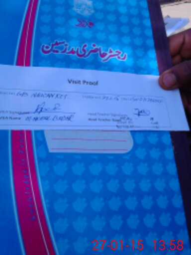 | School Visited by School Health & Nutrition Supervisor (No. of Visits) | 1 | Name1: | Robina Mumtaz | Name2: | |