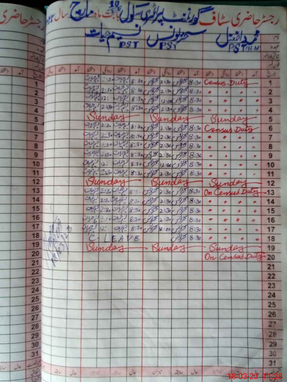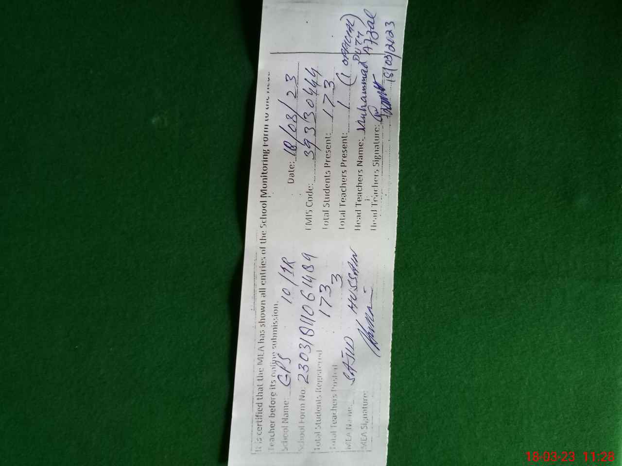 | Name: MU**** AF**** Designation: (School Headmaster's/Headmistress's) PST Phone/Cell Number: 03**** |
