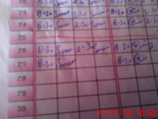 | Monitoring Date: 27-01-2015 | Start Time: 27-01-2015 10:44 AM | End Time: 27-01-2015 10:55 AM | Name of MEA: Z.**** M.Is**** | |