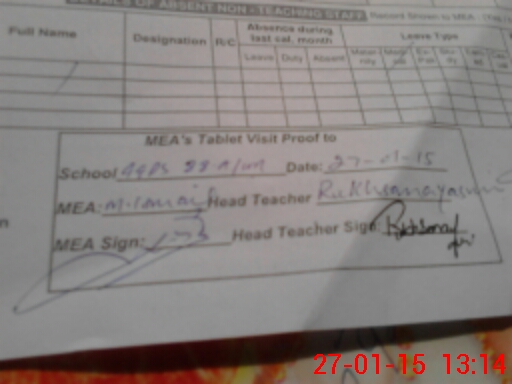 | Attendance Register | Head Teacher | MEA with School | Visit Proof |