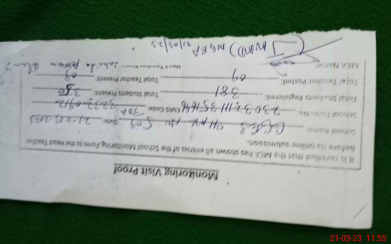 | Attendance Register | Head Teacher | MEA with School | Visit Proof |