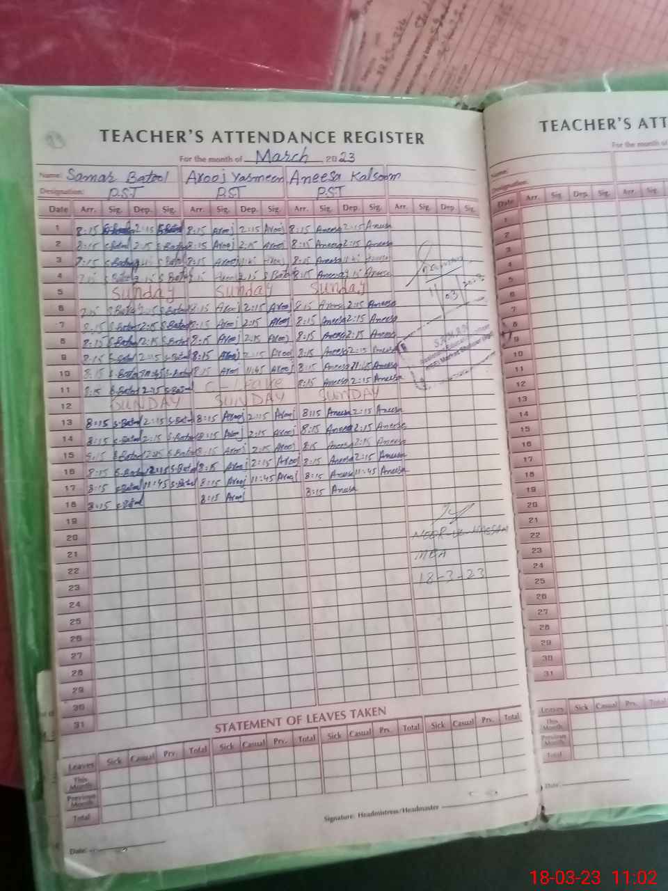 | Name: SA**** BA**** Designation: (School Headmaster's/Headmistress's) PST Phone/Cell Number: 03**** |