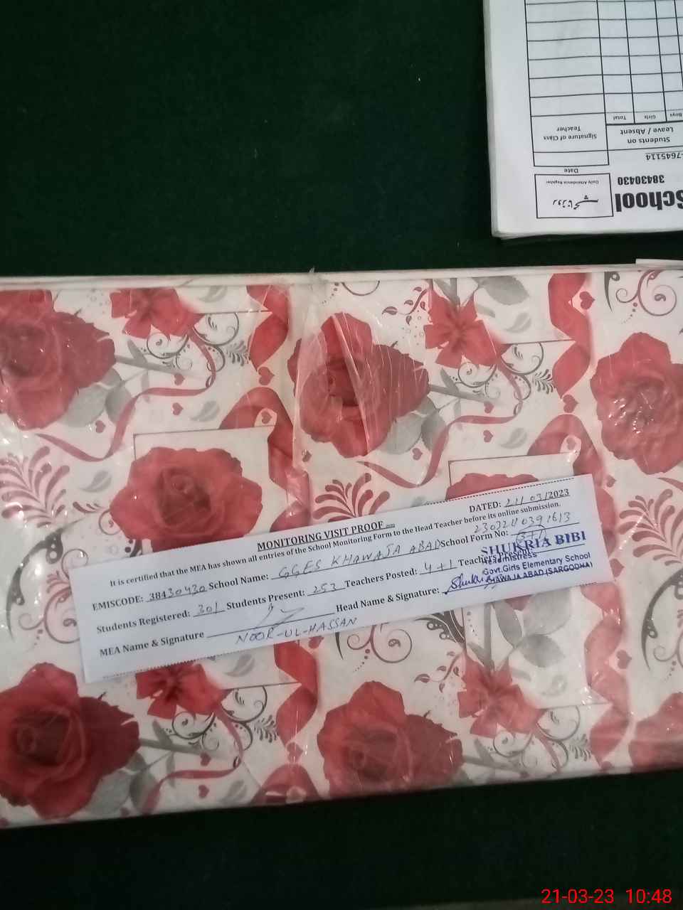 | Certified that this School was Inspected by the Undersigned MEA/DMO Today and the Information Stated Above is as Per Record. | |||||