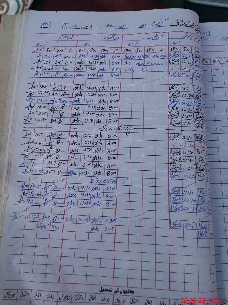 | CNIC | Full Name | Designation | R/C | Absence during last cal. month |