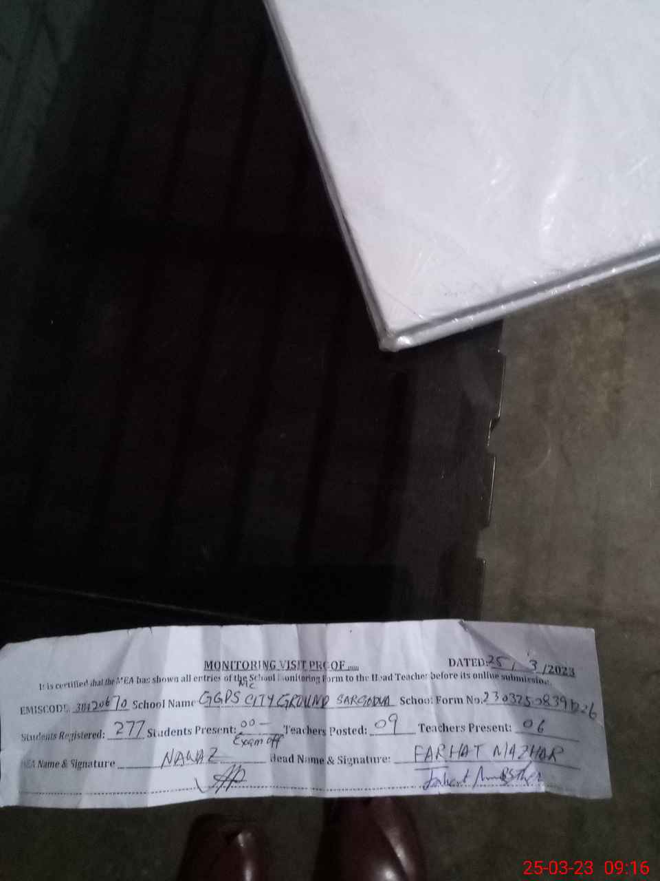 | Attendance Register | Head Teacher | MEA with School | Visit Proof |
