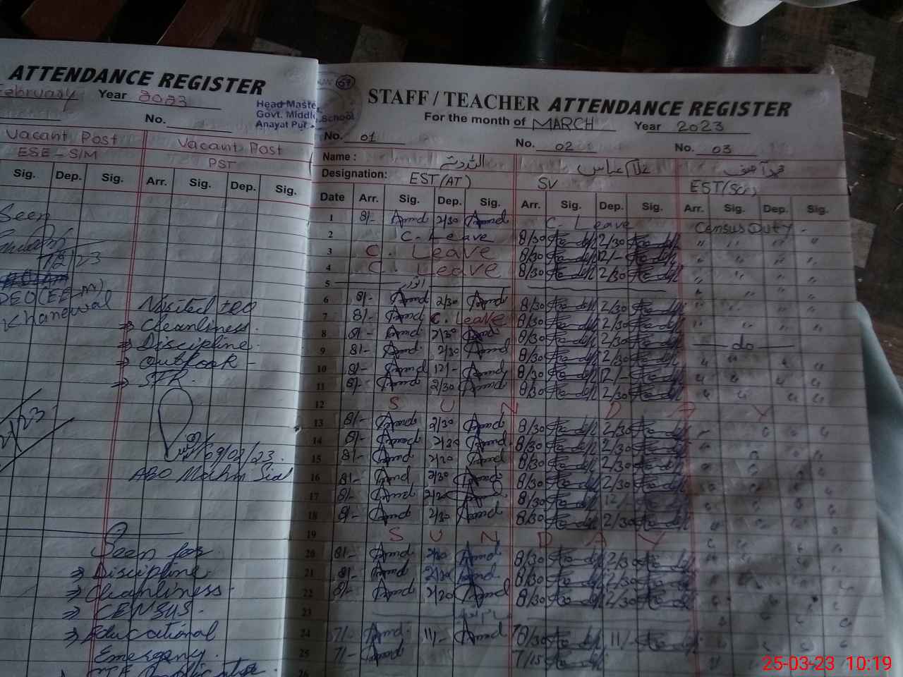| CNIC | Full Name | Designation | R/C | Absence During Last Calender Month |