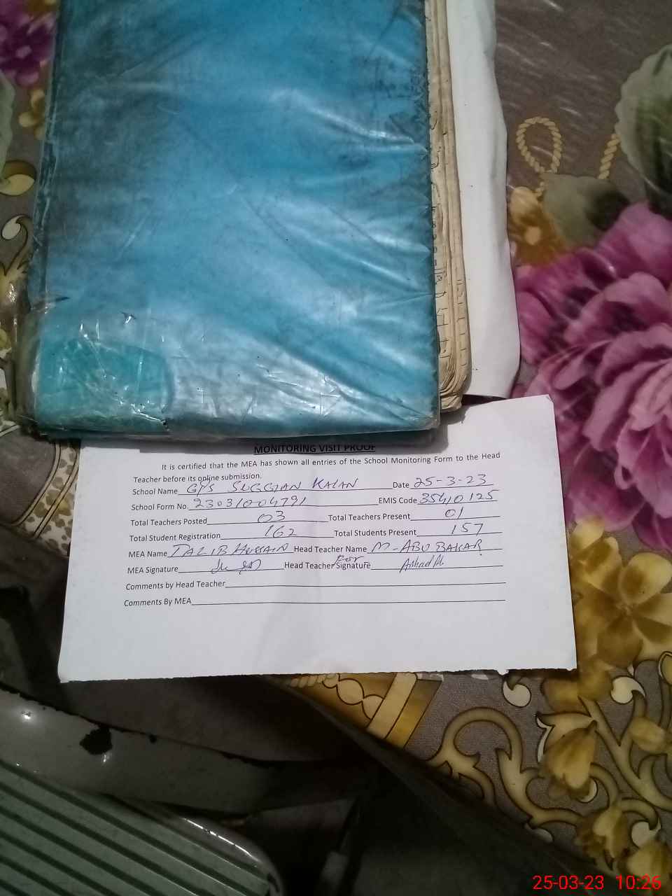 | Attendance Register | Head Teacher | MEA with School | Visit Proof |