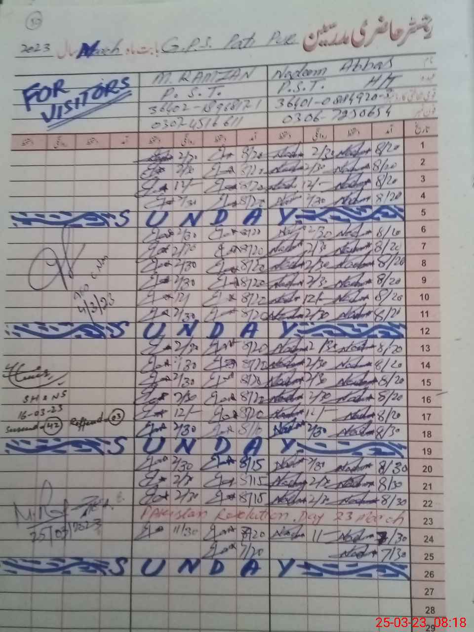 | Name: NA**** AB**** Designation: (School Headmaster's/Headmistress's) PST Phone/Cell Number: 03**** |