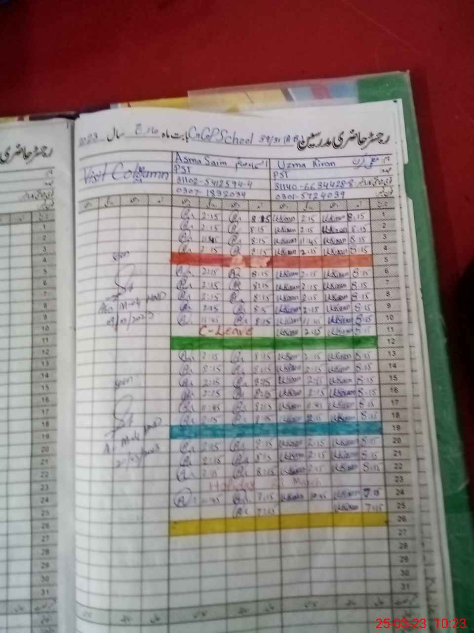 | Name: Uz**** Ki**** Designation: (School Headmaster's/Headmistress's) PST Phone/Cell Number: 03**** |