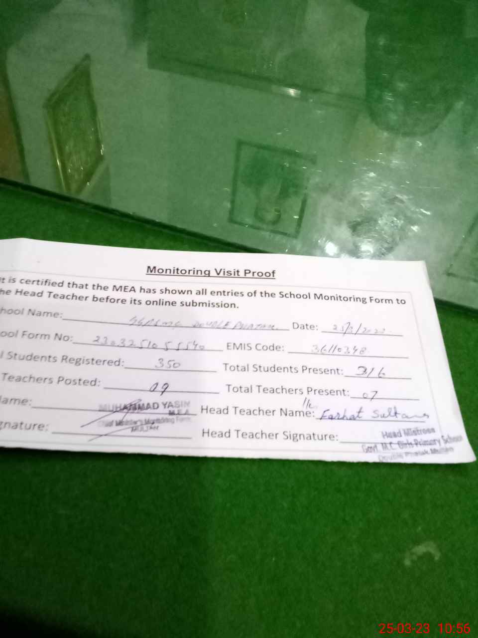 | EMIS Code: 36110348 | Name of School: GGPS MC DOUBLE PHATAK MULTAN | |||