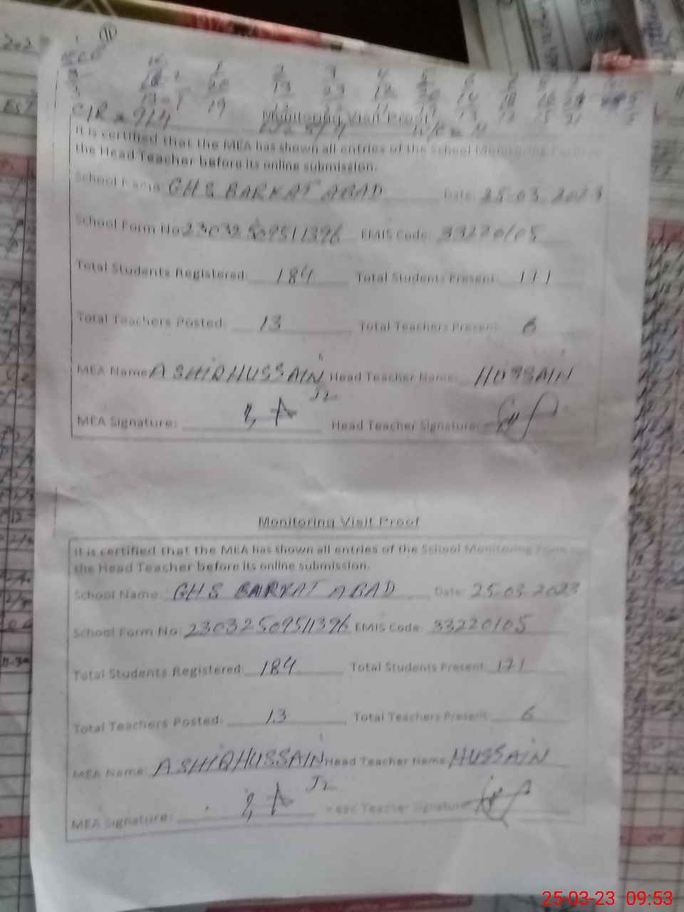 | EMIS Code: 33220105 | Name of School: GHS BARKAT ABAD | |||
