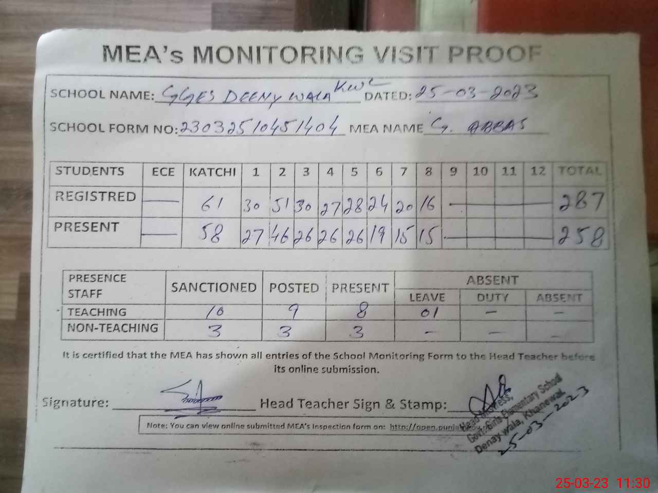 | EMIS Code: 36420105 | Name of School: GGES DENAY WALA, KHANEWAL | |||