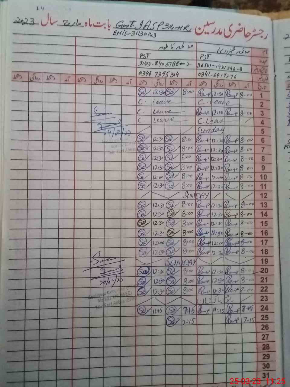 | Name: MU**** Na**** Designation: (School Headmaster's/Headmistress's) PST/PTC/JV Phone/Cell Number: 03**** |