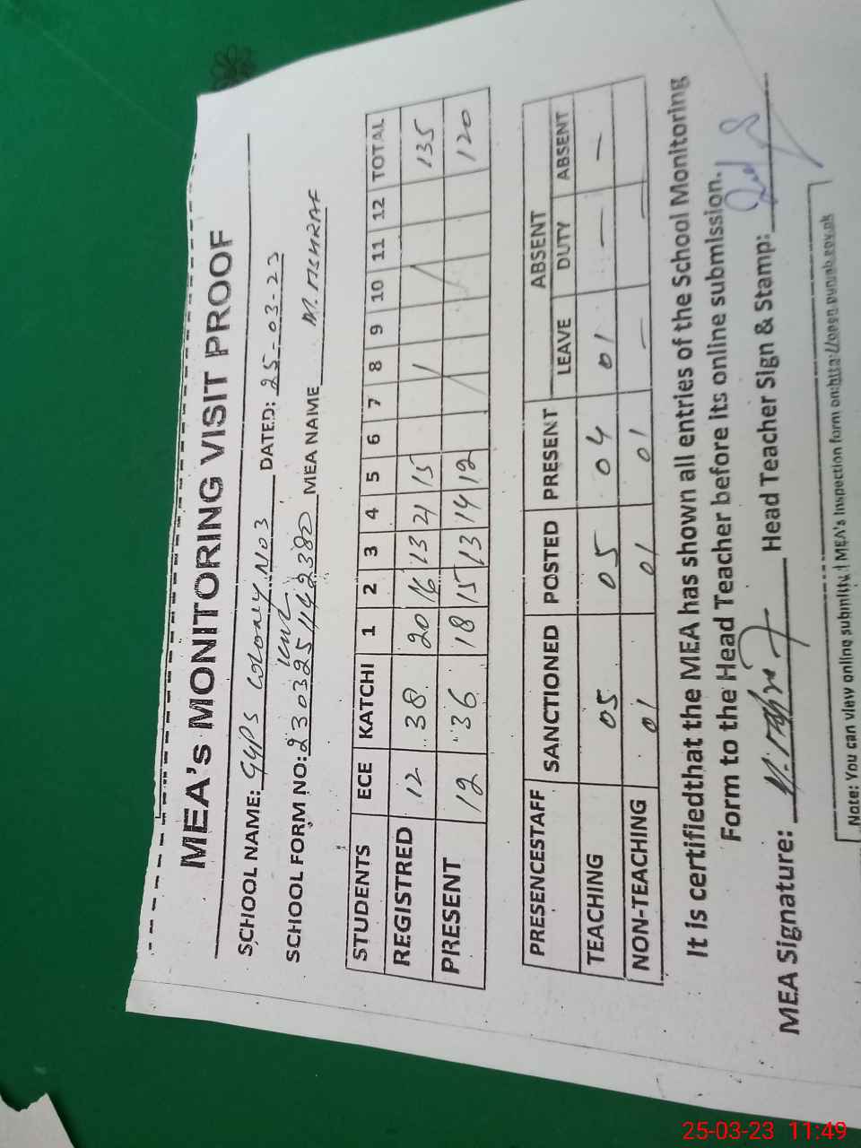 | EMIS Code: 36420358 | Name of School: GGPS COLONY NO.3 KHANEWAL | |||