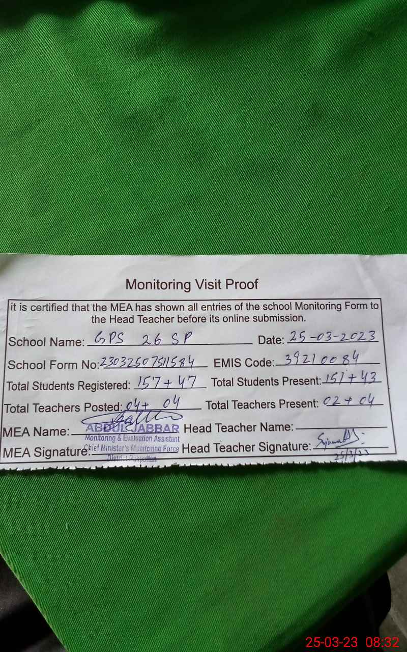 | EMIS Code: 39210084 | Name of School: GPS 26/SP PAKPATTAN | |||