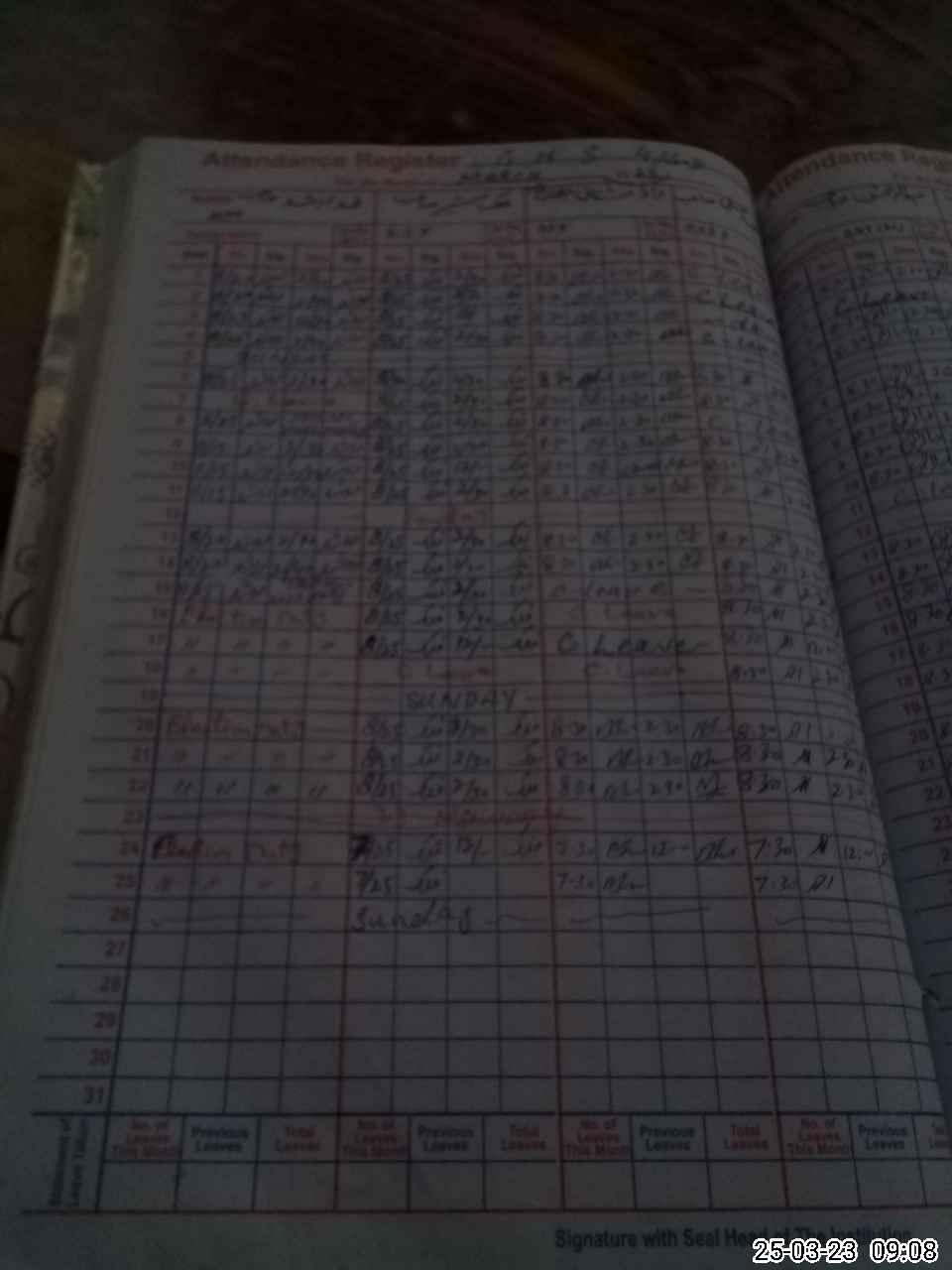 | Leave | Duty | Absent | Maternity | Medical | Ex- Pak |