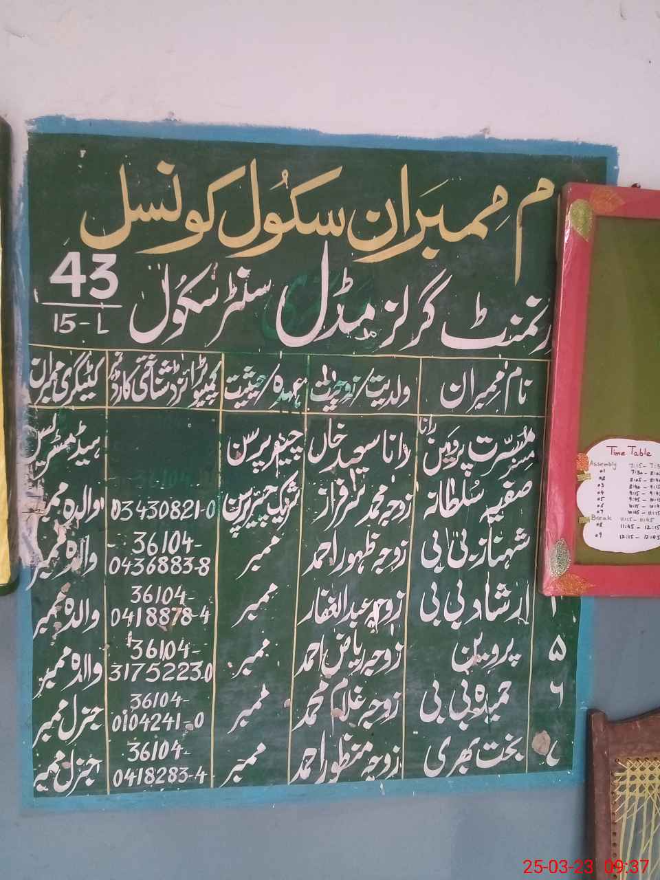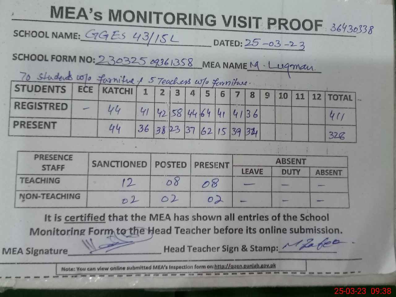 | EMIS Code: 36430338 | Name of School: GGES 43/15-L, MIAN CHANNU | |||