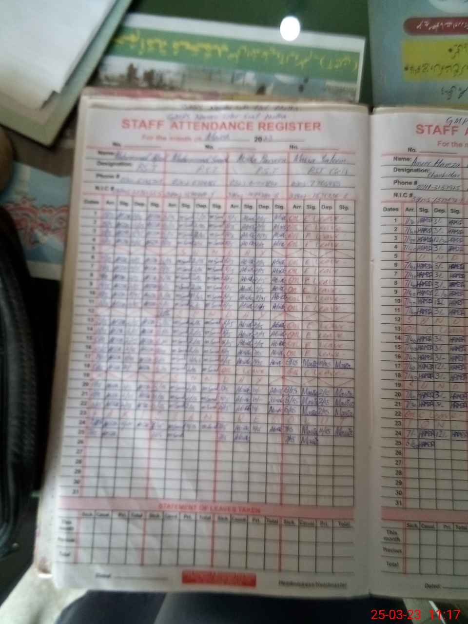 | CNIC | Full Name | Designation | R/C | Absence during last cal. month |