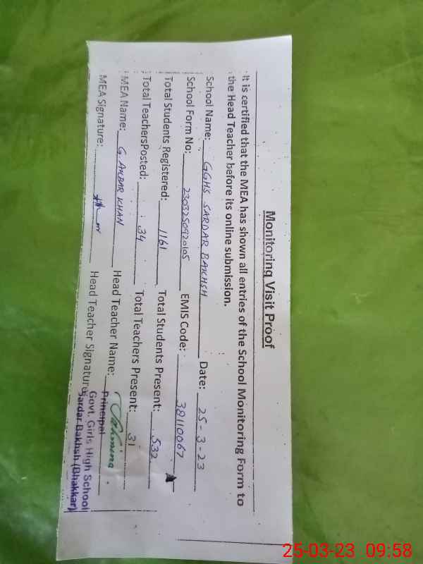 | EMIS Code: 38110067 | Name of School: GGHS SARDAR BAKHSH | |||