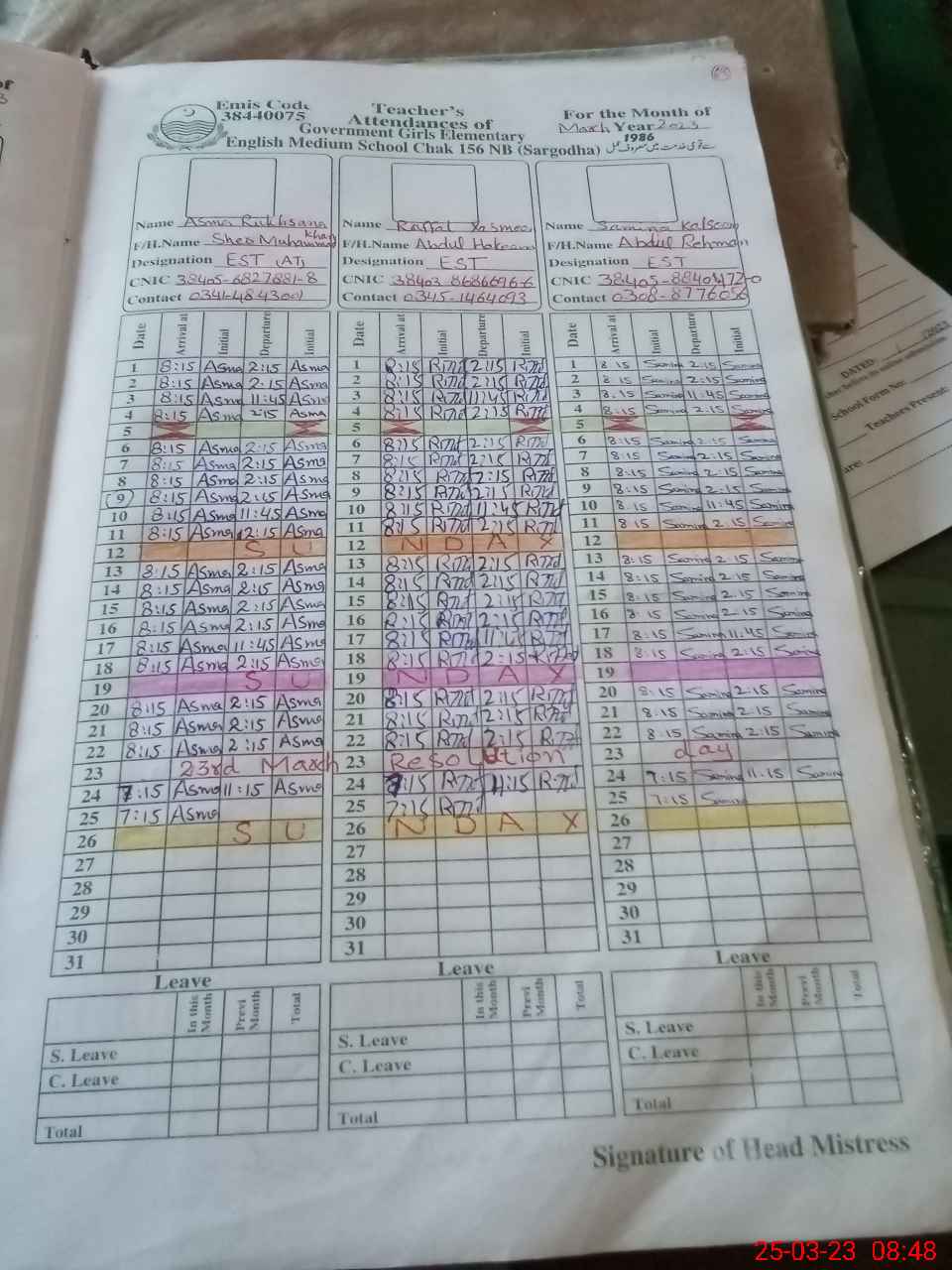| Name: As**** Ru**** Designation: (School Headmaster's/Headmistress's) EST (AT) Phone/Cell Number: 03**** |