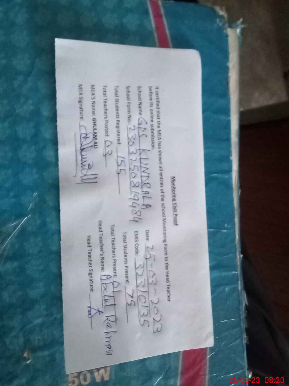 | EMIS Code: 32310135 | Name of School: GPS KUNDRALA | |||