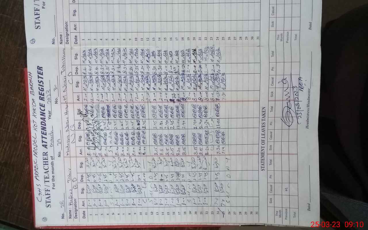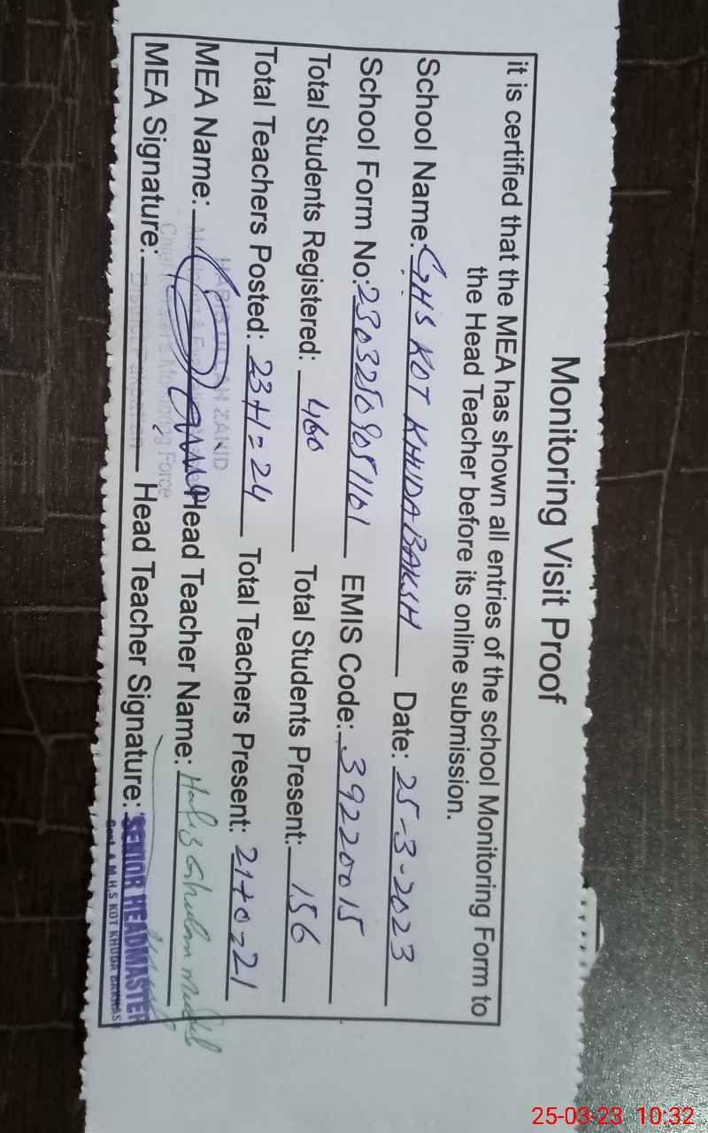 | EMIS Code: 39220015 | Name of School: GHS ARABIC MODEL KOT KHUDA BAKHSH | |||
