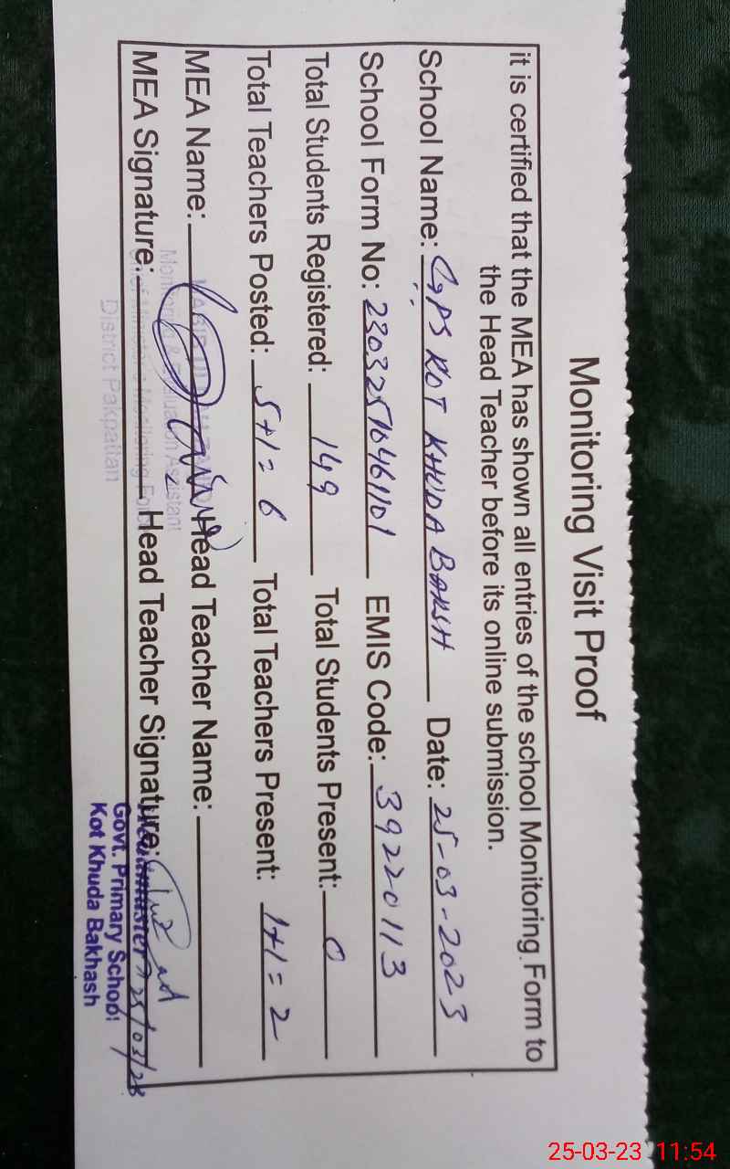 | EMIS Code: 39220113 | Name of School: GPS KOT KHUDA BUKHSH | |||