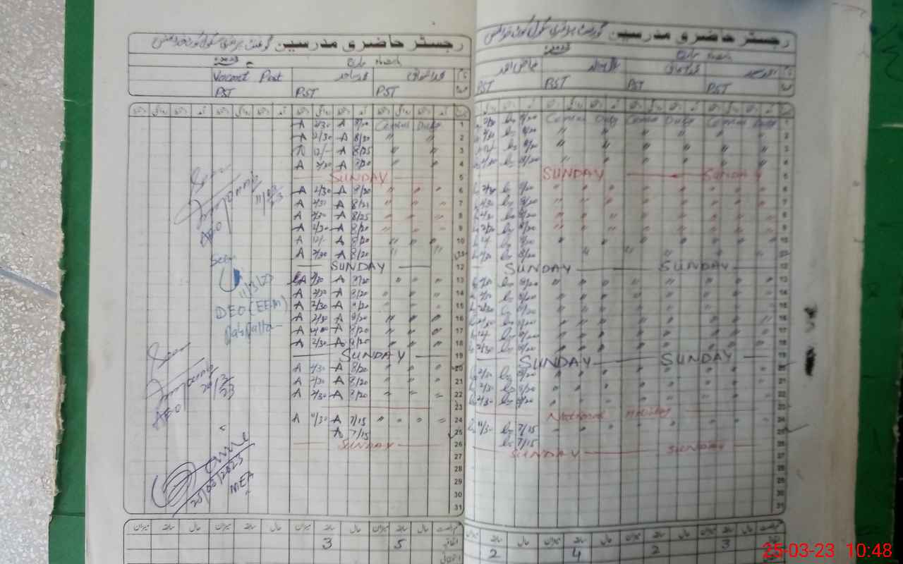 | Name: BI**** KH**** Designation: (School Headmaster's/Headmistress's) PST Phone/Cell Number: 03**** |